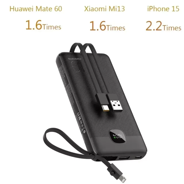 Stay connected wherever life takes you with this ultra-efficient 10000mAh portable power bank. Compact yet powerful, this external battery pack delivers blazing-fast charging speeds of up to 22.5W — perfect for juicing up your devices quickly on the go. Designed for today’s busy lifestyles, it features built-in cables, multiple output ports, and advanced quick charge technology, making it a true all-in-one solution for smartphones and tablets. Whether you’re traveling, commuting, working remotely, or exploring the outdoors, this power bank ensures your devices stay powered all day long.