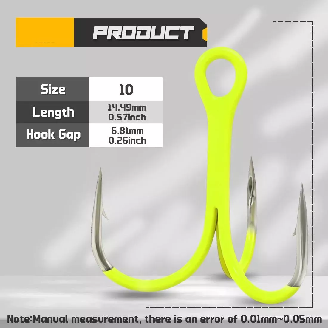 Unlock more action and aggressive strikes with these 10pcs UV Fluorescent Green Treble Hooks, designed specifically for deep freshwater fishing. Whether you’re chasing trophy pike, musky, zander, or perch, these ultra-visible hooks are built to shine—literally—when light fades and depths increase. Their fluorescent orange-green coating glows under UV light, making your lure irresistible to predator species in murky or deep water environments.