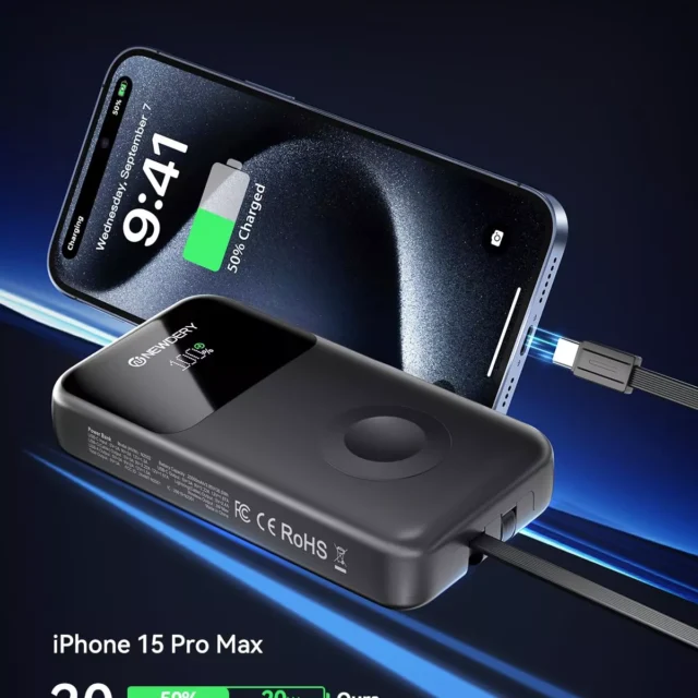 Featuring built-in Lightning and USB-C cables along with a magnetic wireless charging pad for your Apple Watch, you can say goodbye to tangled cords and forgotten cables. With 20W PD fast charging and support for up to five devices simultaneously, it’s perfect for tech-savvy users who never settle for low battery alerts.
