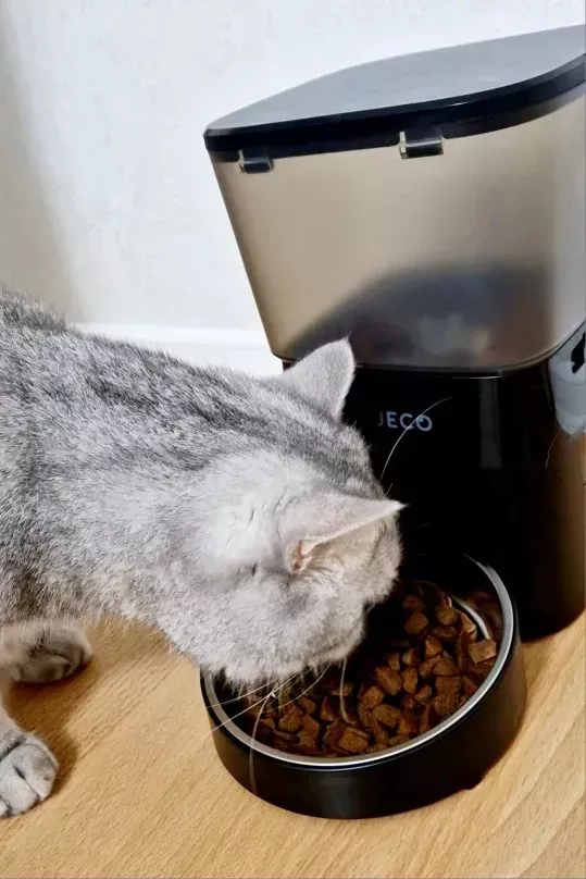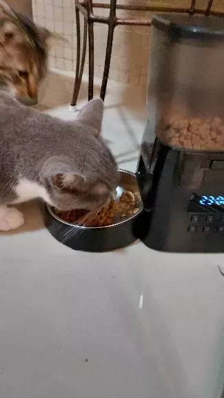 This automatic feeder has made such a big difference in both mine and my cat’s life! No more waking up early or rushing home from work just to make sure she gets her meal - now everything happens automatically as per her usual schedule!