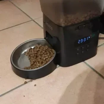 this automatic pet food dispenser has been wonderful. the stainless steel bowl is durable and hygienic. setting it up was easy and it dispenses food accurately. my pet loves it and i love not having to worry about feeding times. it’s a perfect solution for busy pet owners and helps with maintaining a regular feeding schedule.