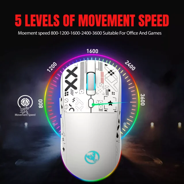 • Precision Tracking: Professional-grade PAW3212 sensor for accurate movement and five adjustable DPI levels (up to 3600 DPI).