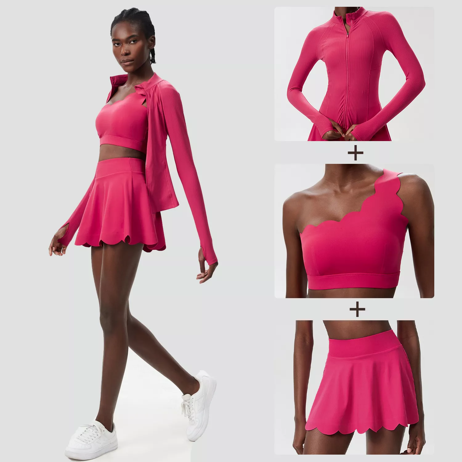 Level up your workout wardrobe with this chic and versatile 3-piece women’s activewear set. Designed for movement and made for style, this set features a flattering sports top, a breathable long-sleeve layer, and a trendy tennis skirt with built-in shorts—crafted to support your every move. Whether you’re flowing through yoga poses, sprinting on the track, or dancing it out in the studio, this outfit blends performance and fashion in one sleek package.