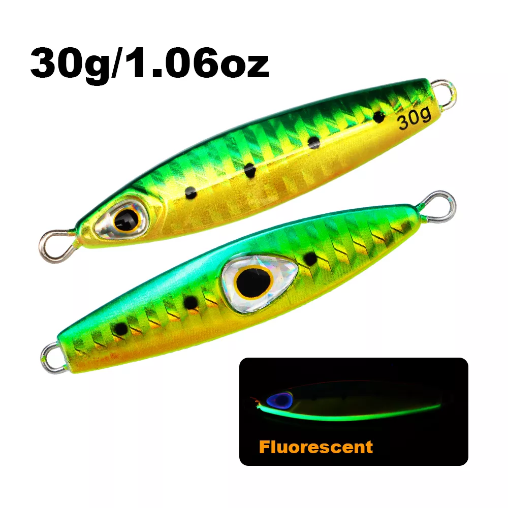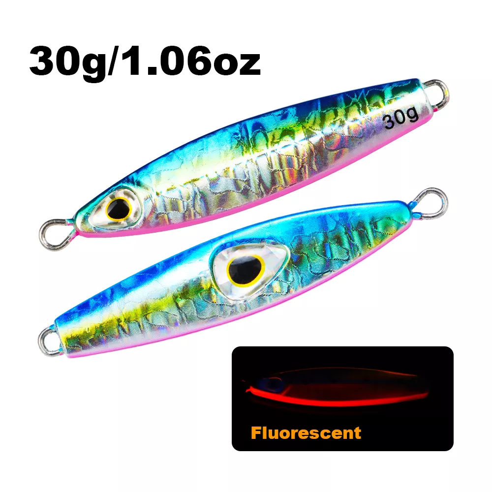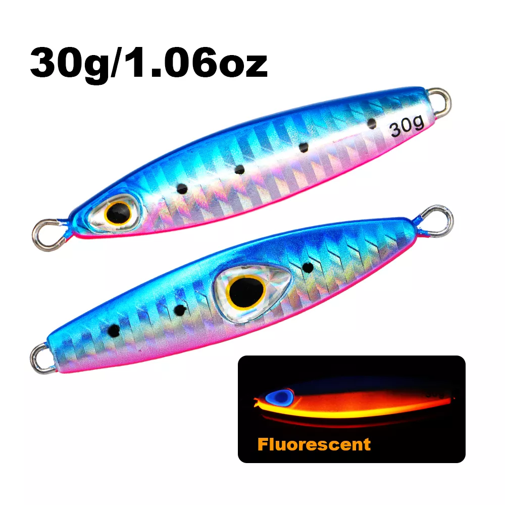 Elevate your saltwater fishing game with this 30g luminous metal slow jig, expertly designed for both power and finesse. Built for shore casting and deep-sea fishing alike, this hard bait combines realistic detail, durable construction, and enticing light reflection to help you land more fish—day or night. Whether you’re targeting snapper, grouper, tuna, or other saltwater predators, this jig delivers irresistible action and visibility in every cast.