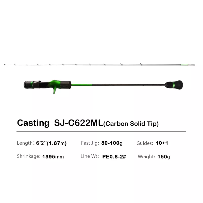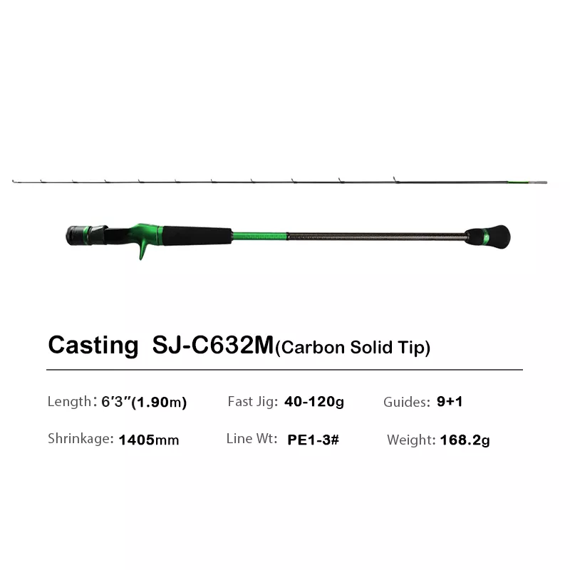 Experience the thrill of ocean fishing with a rod that combines lightweight finesse with unyielding strength. This 6.35ft slow jigging rod is crafted for anglers who demand sensitivity, responsiveness, and resilience on the open sea. Designed specifically for saltwater spinning and baitcasting, it excels in boat fishing and offers a solid, controlled feel even during tough fights with powerful fish. Whether you’re targeting aggressive species on a jig or fine-tuning your lure’s movement, this rod is built to perform.