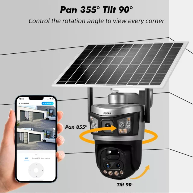 Featuring two lenses—a fixed bullet lens and a PTZ (pan-tilt-zoom) lens—this compact powerhouse offers split-screen monitoring of two areas at once, acting like two cameras in one. Whether you’re keeping an eye on your driveway and front door or a wide yard and gate, this camera delivers twice the coverage without double the cost. Built-in solar charging and battery power ensure it stays online 24/7, even in remote or off-grid locations.