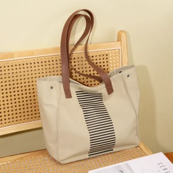 Lightweight Women’s Canvas Tote – Luxury Leather Shoulder & Crossbody Bag