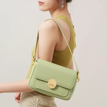 Elegant Green Leather Shoulder & Crossbody Bag for Women – Spring/Summer Style