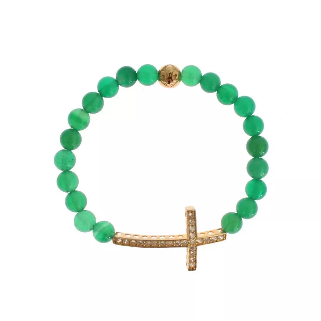 NIALAYA Gold-Plated 925 Sterling Silver Bracelet with Green Jade & CZ Cross