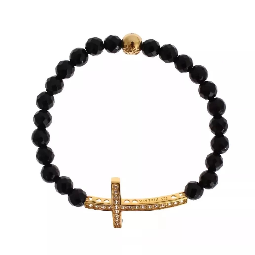NIALAYA Gold-Plated 925 Sterling Silver Bracelet with Agate & CZ Diamond Cross