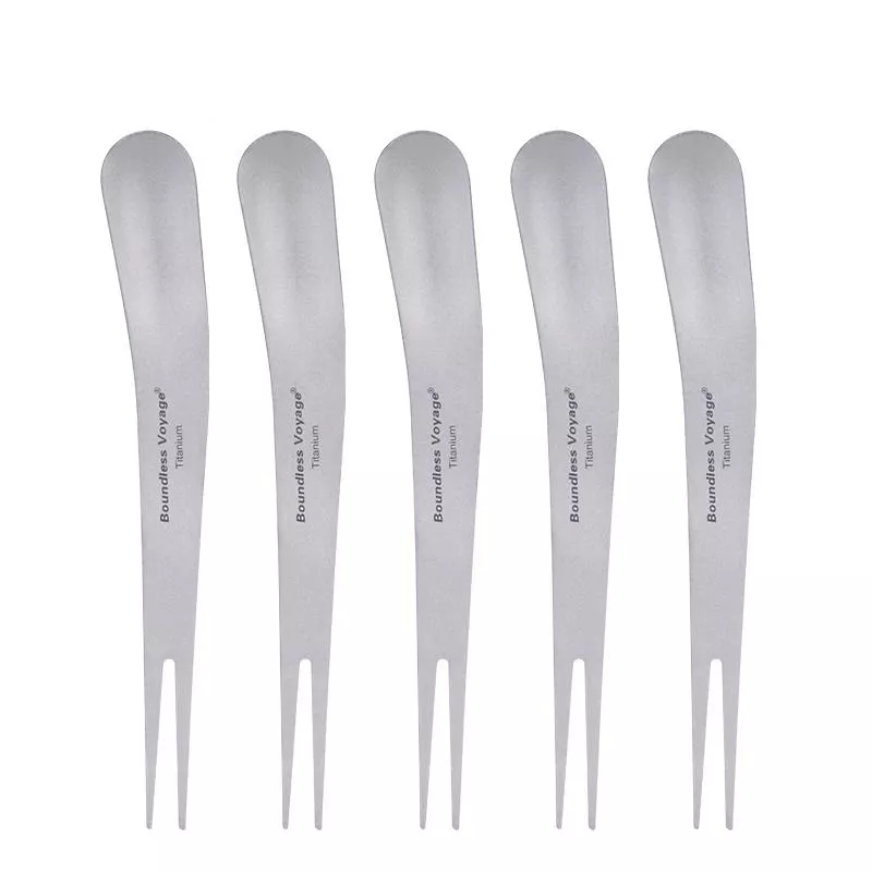 Ultralight Titanium Camping Fork Spoon Set – 5pcs Reusable Outdoor Cutlery