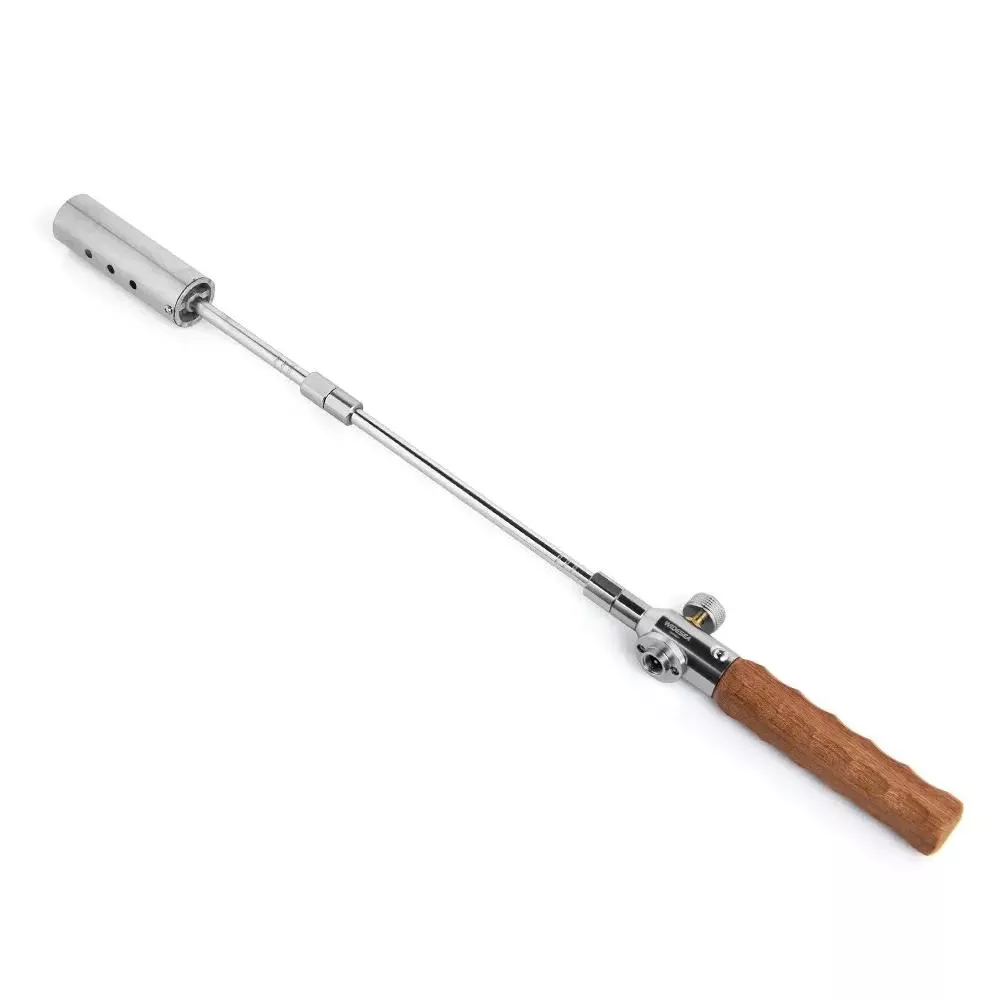 Portable Long Flame Camping Torch with Adjustable Firepower & Wooden Handle