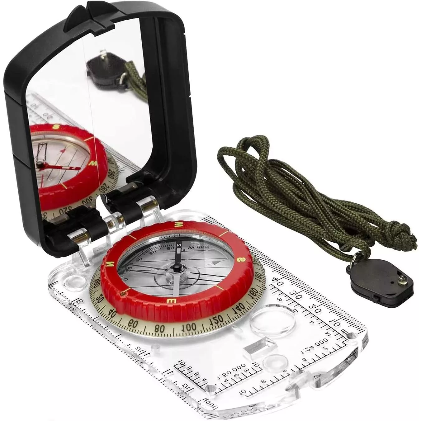 Military-Grade Sighting Compass with Mirror & LED Light for Hiking & Orienteering