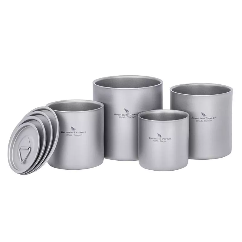 Ultralight Titanium Double-Walled Stackable Camping Mugs – 120ml to 400ml