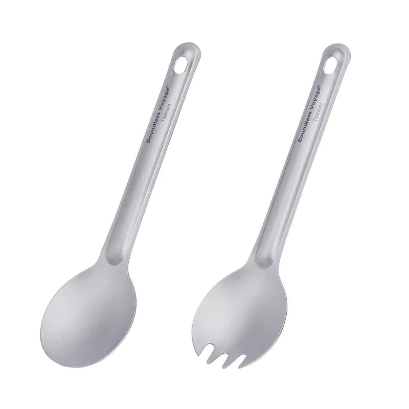 Ultralight Titanium Spoon and Spork Set with Storage Bag for Camping & Hiking