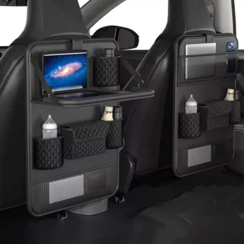 Waterproof Leather Car Backseat Organizer with Foldable Tray Table