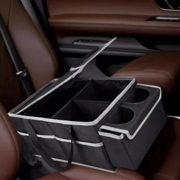 Foldable Car Seat Organizer with Cup Holder and Multi-Compartment Storage