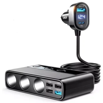 150W 4-Socket Car Charger with USB PD3.0 & QC3.0 Fast Charging Adapter