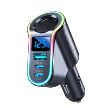 140W Fast Charging USB-C Car Charger with Digital Display for Laptops & Phones