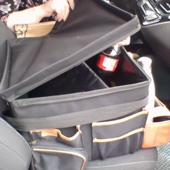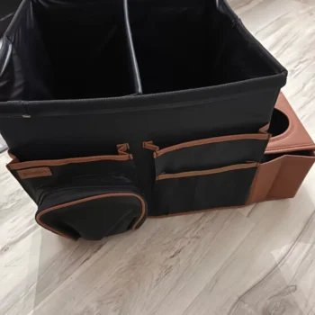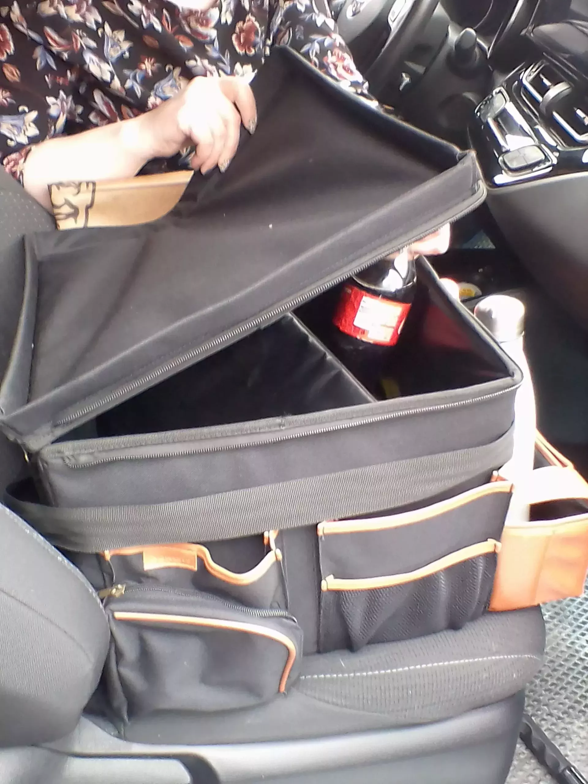 Now this is my favorite car organizer! I received my order a month ago. I purchased this to keep in the back seat with my son. Inside, I stored everything that was lying in my car and didn't have its place. And I use the pockets to store my son's toys, snacks and drinks. So convenient! My son also loves the lid and uses it as a table. High-quality, stylish, and really versatile organizer! Thanks a lot!