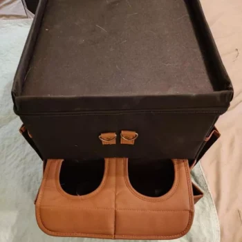 We live near a park and took this portable organizer especially for picnics. Awesome thing! The food stays hot, there is a lot of space inside, and the carrying strap is adjustable, which is very convenient for us. We are very satisfied with the purchase and recommend it. Thanks!