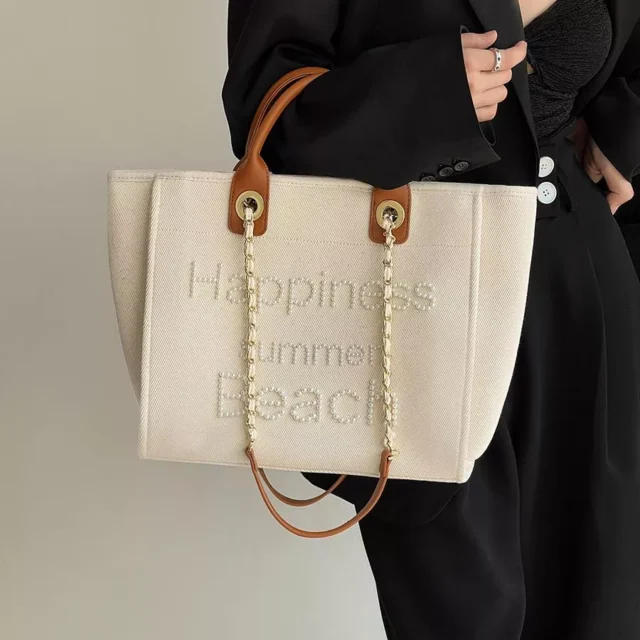Elevate your everyday style with this eye-catching beaded pearl canvas tote – a perfect blend of fashion and functionality. This large-capacity shoulder bag is crafted with meticulous attention to detail, making it a must-have accessory for modern women who want practicality without sacrificing elegance. Designed with soft, durable canvas and finished with genuine leather handles, this bag brings a fresh, high-fashion feel to your wardrobe while offering the space and strength you need on the go.