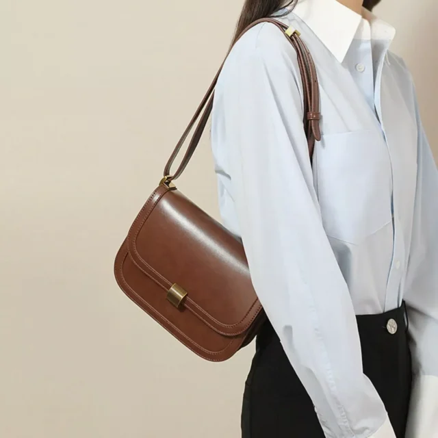 Whether you’re dressing up a casual outfit or adding the final touch to a sleek ensemble, this elegant brown saddle bag brings a polished finish to any look. Its minimalist solid color and clean lines give it a classic appeal, while the soft texture and stylish silhouette make it fashion-forward and fresh.