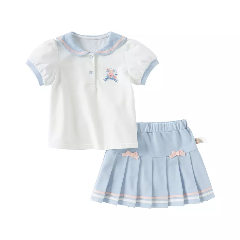 Girls’ Summer Polo Skirt Set – Cute Cartoon Two-Piece Outfit for Ages 7-13