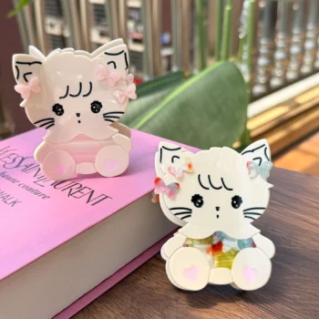 Kawaii Cat Hair Claw Clip – Cute Cartoon Bow Acetate Hair Accessory for Women