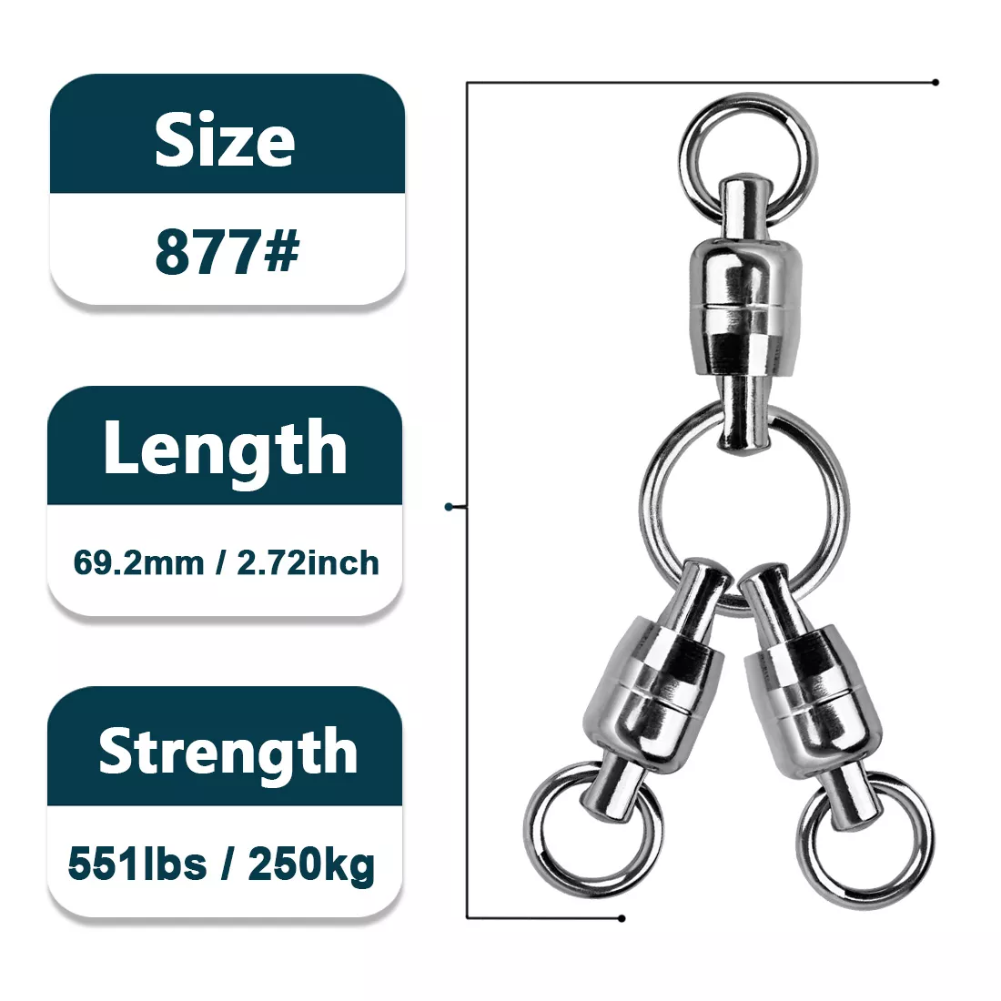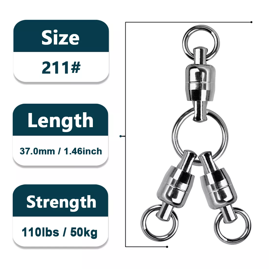 These swivels are a game changer for anglers who demand performance and durability. The advanced ball bearing design ensures ultra-smooth rotation, helping you eliminate line twists and deliver a natural lure presentation. The three-way construction allows for custom rig setups, whether you’re using live bait, artificial lures, or building a heavy-duty drop rig for big game fishing.