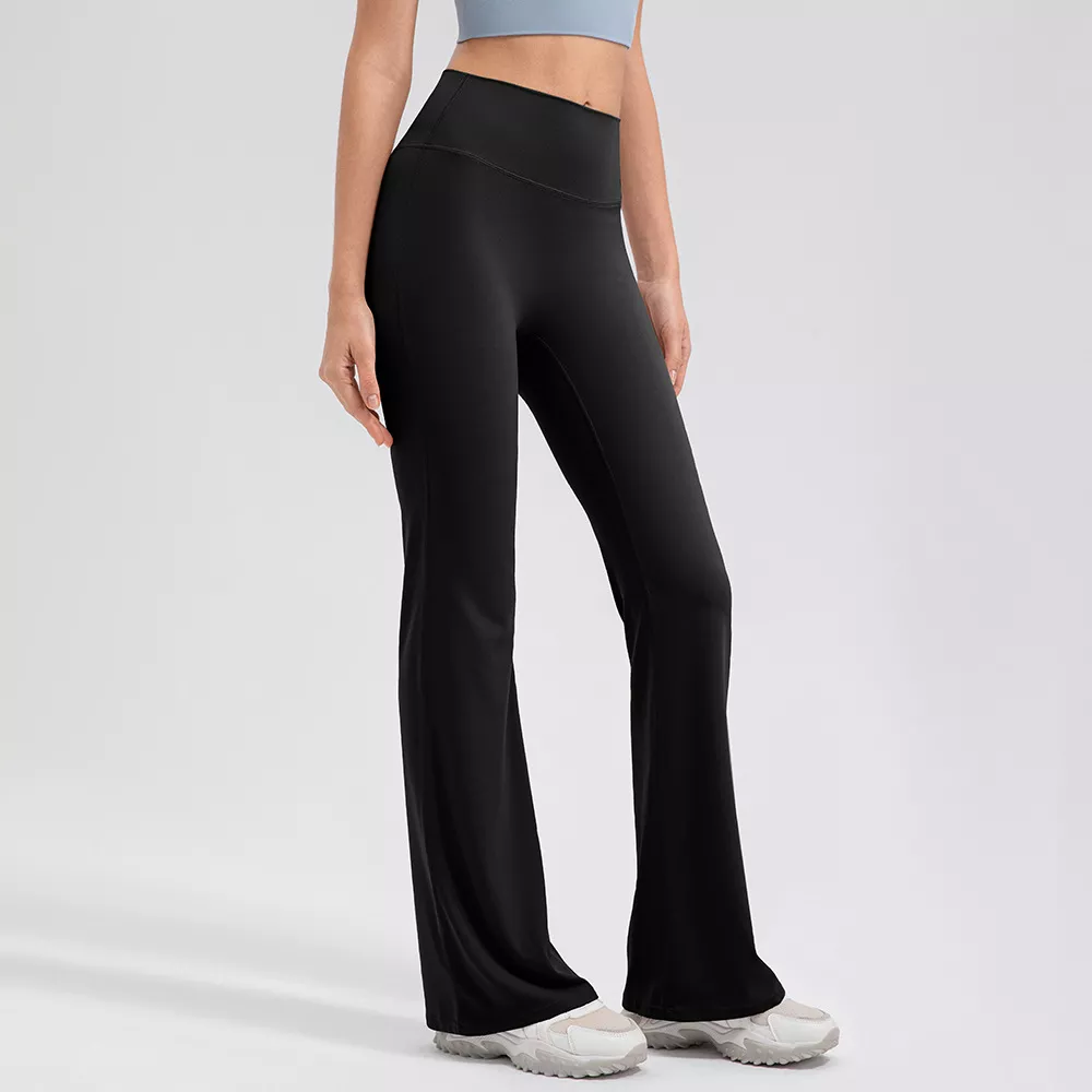 These flared yoga pants are ideal for any activity that demands comfort and flexibility. Wear them to your next yoga session, while dancing, working out at the gym, or simply lounging at home. Pair them with a fitted tank for workouts or a cozy sweater for casual days out. Their breathable, knitted fabric makes them perfect for year-round wear – from crisp spring mornings to cozy winter evenings.