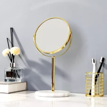 Elegant Marble Vanity Mirror with 360° Rotation & 2X Magnifier – Gold Finish
