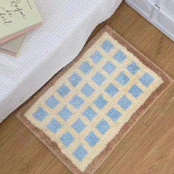 Cute Plaid Anti-Slip Tufted Bathroom Rug – Soft Plush Absorbent Floor Mat