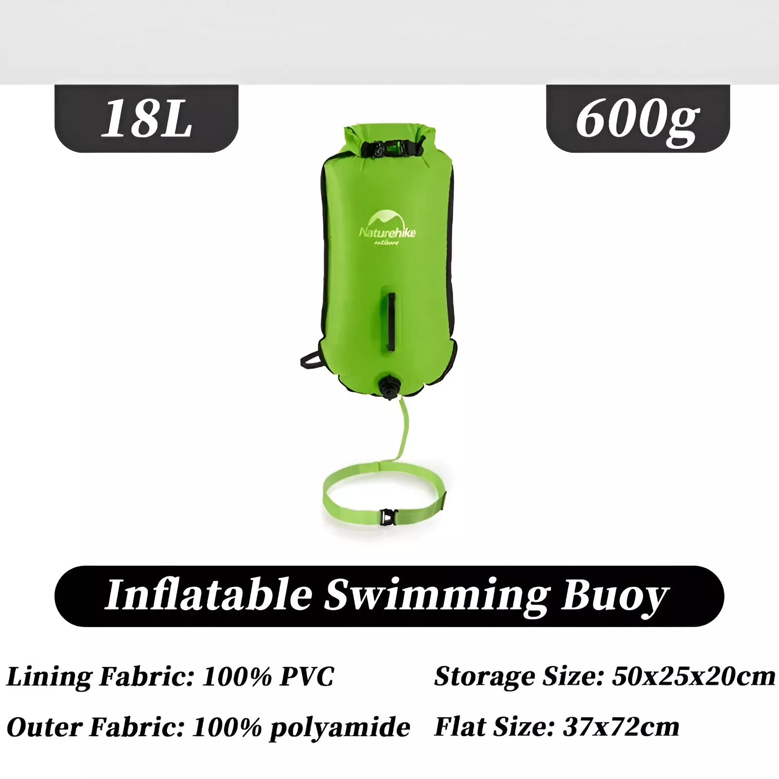 Crafted from durable PVC, this bag is built to handle waves, splashes, and long distances. Its double air chamber construction offers added buoyancy and reliability, ensuring you stay visible and supported in the water. The built-in dry compartment keeps your essentials safe and dry while you swim, from your phone and keys to snacks or spare gear. Simply inflate, strap it on, and glide through the water knowing your items are protected and you’re clearly visible to others.