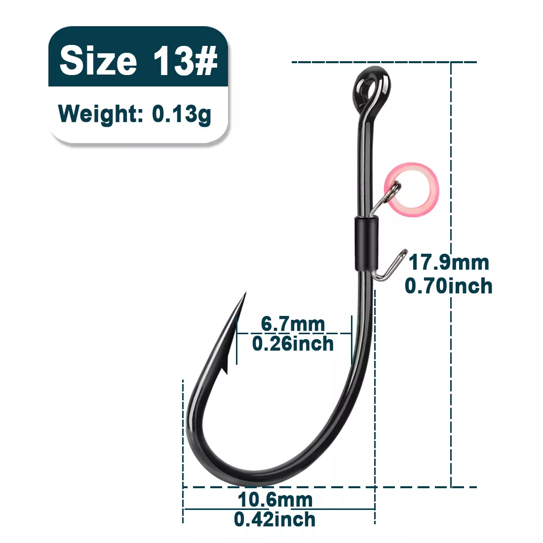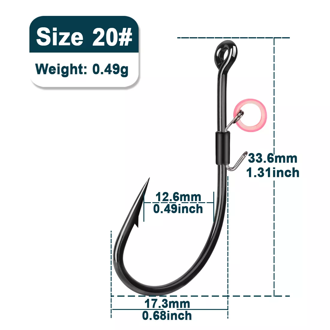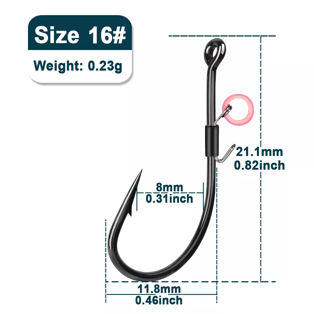 Unlike traditional hooks that require you to pierce the shrimp, this innovative design gently grips the shrimp shell, allowing it to swim freely and naturally — just the way predators like it. Built from high carbon steel, these hooks offer high strength, corrosion resistance, and reliable durability no matter how tough the conditions get. Plus, the glow-in-the-dark detail boosts your visibility and attraction power during low-light or night fishing sessions.
