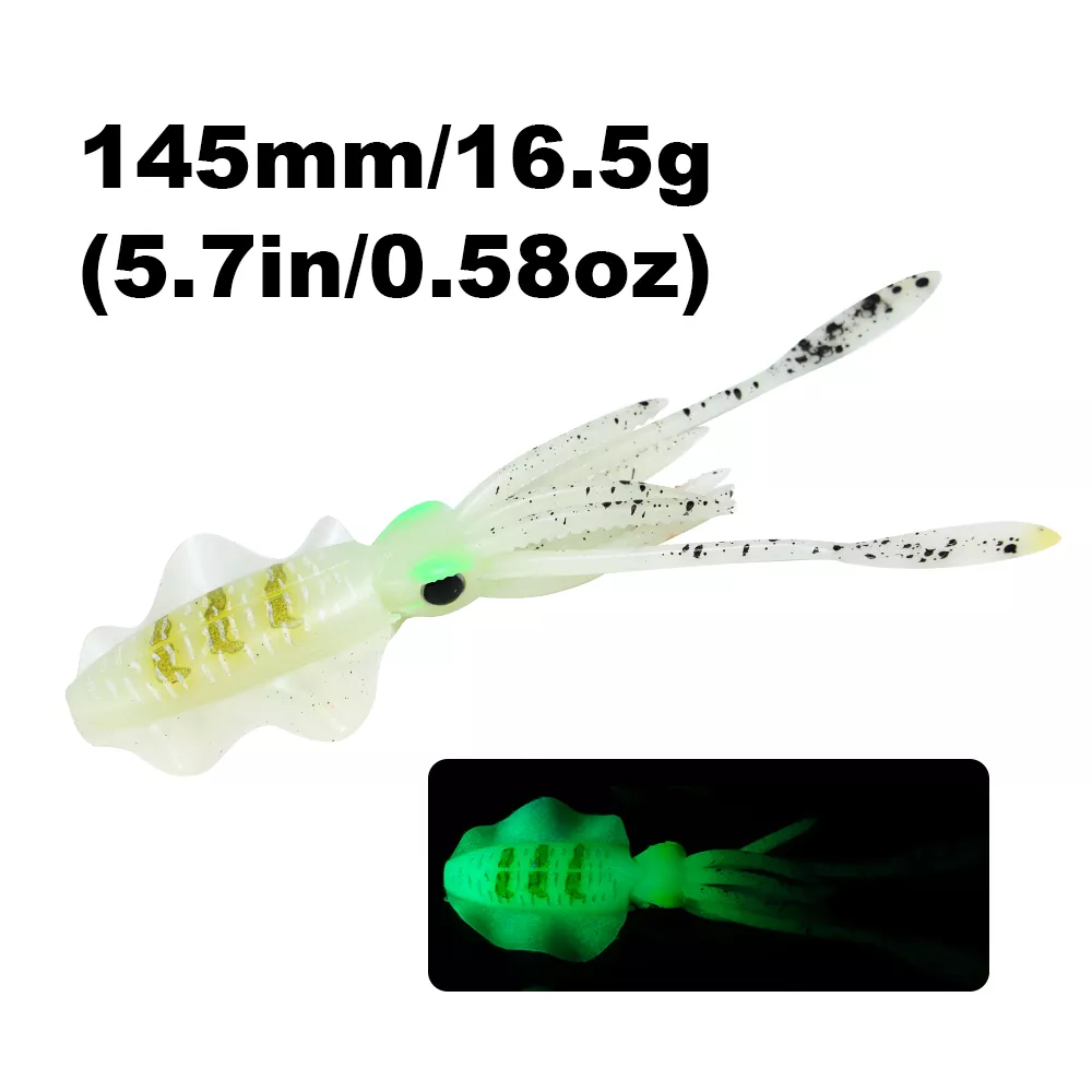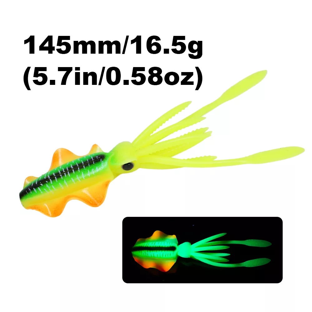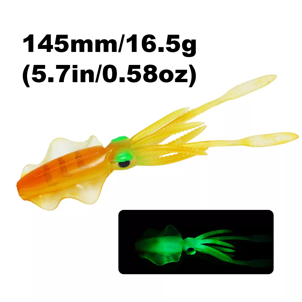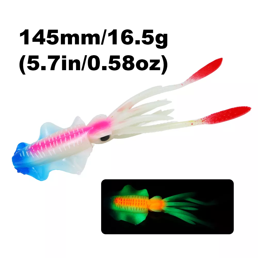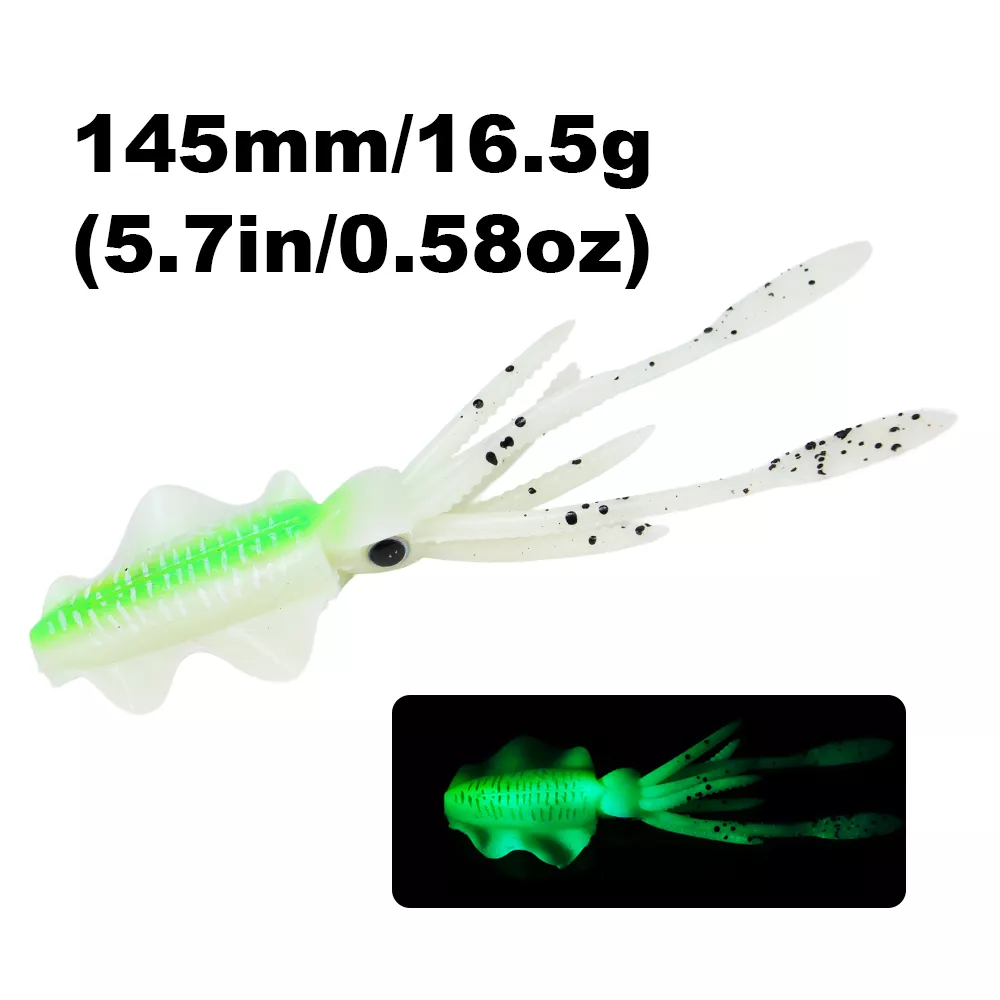 Bring the deep sea to life with this 6-inch luminous soft squid lure, designed to trigger powerful strikes from big saltwater predators. Crafted from high-quality PVC soft plastic, this lifelike octopus bait mimics the natural movement of squid and glows in the dark to increase visibility in deep or murky waters. Whether you’re targeting tuna, snapper, grouper, or other aggressive game fish, this soft bait offers the motion, texture, and glow that fish simply can’t resist.
