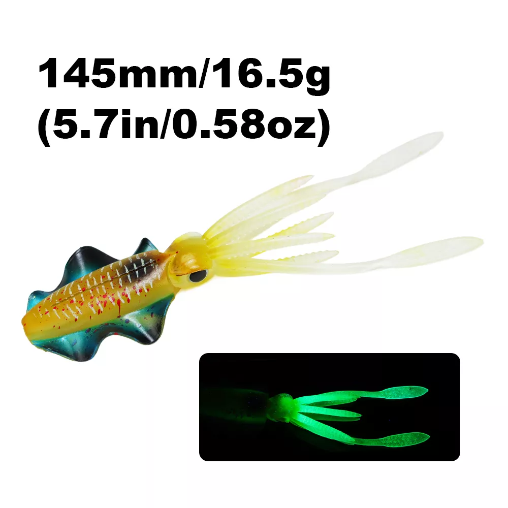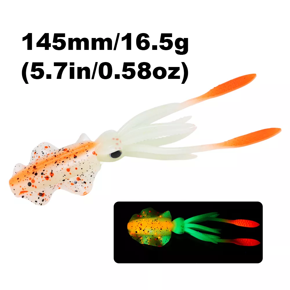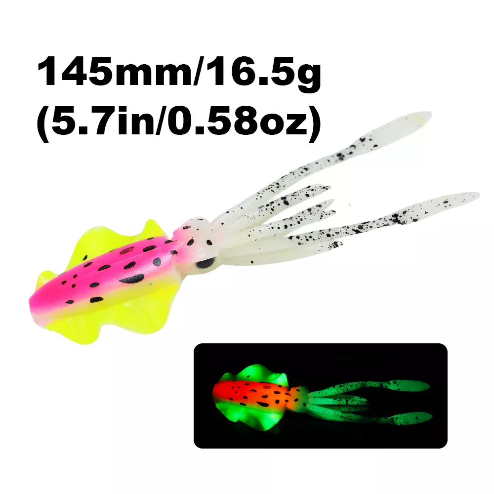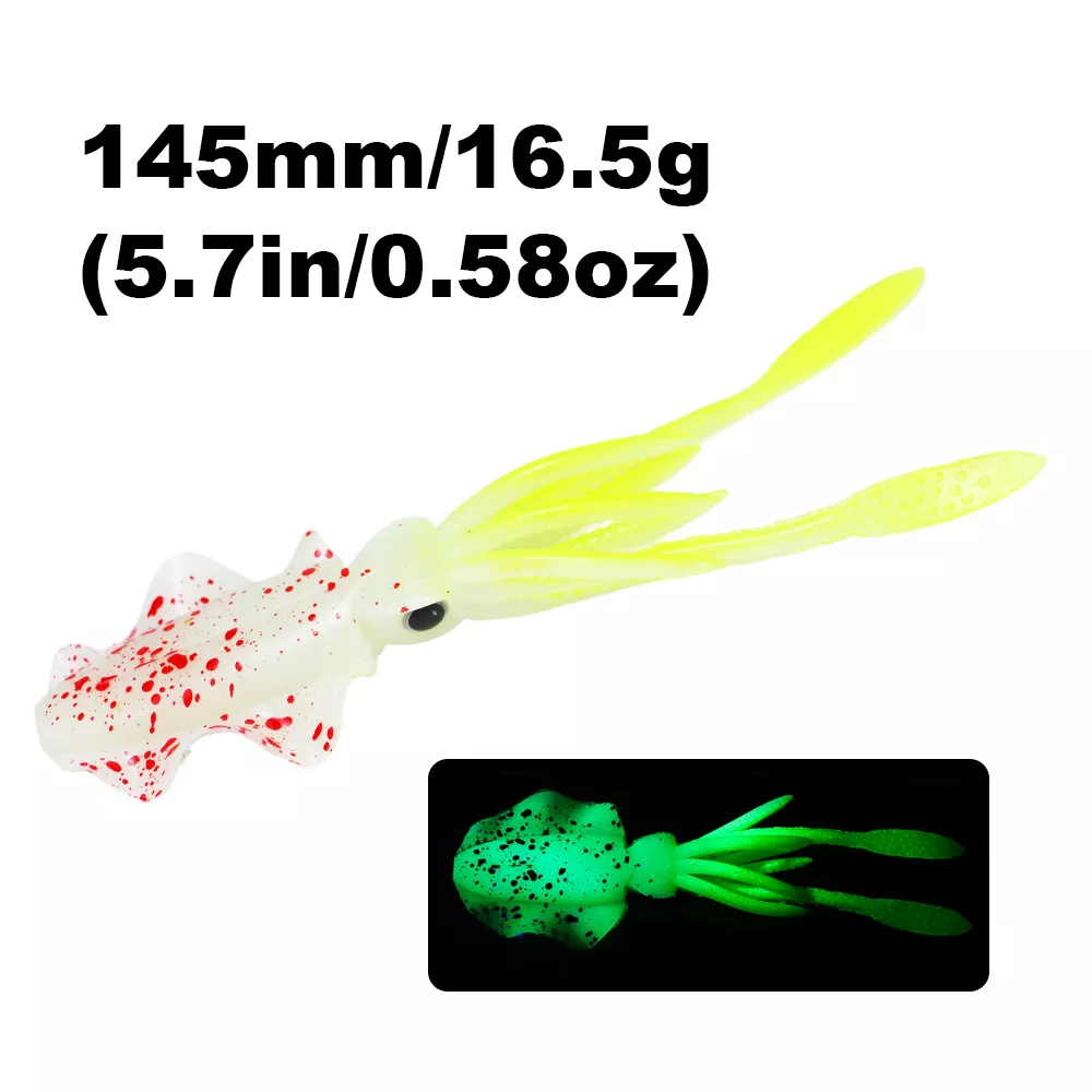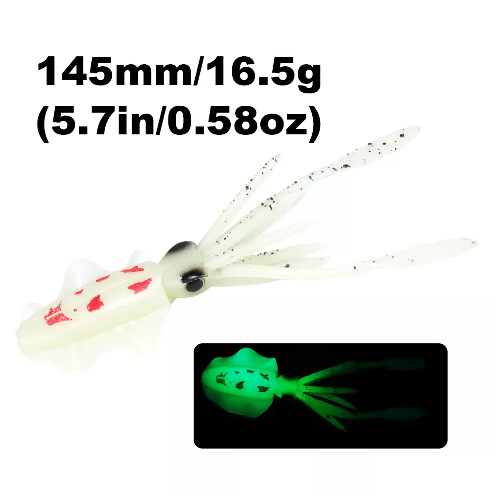 Bring the deep sea to life with this 6-inch luminous soft squid lure, designed to trigger powerful strikes from big saltwater predators. Crafted from high-quality PVC soft plastic, this lifelike octopus bait mimics the natural movement of squid and glows in the dark to increase visibility in deep or murky waters. Whether you’re targeting tuna, snapper, grouper, or other aggressive game fish, this soft bait offers the motion, texture, and glow that fish simply can’t resist.