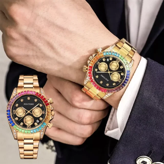 Step up your style with this Luxury Men’s Stainless Steel Quartz Watch, designed for the modern man who values both fashion and practicality. Crafted with a sleek alloy case and a durable stainless steel strap, this watch blends the sophistication of luxury with the ease of casual wear. Its round dial features striking Arabic numeral markers, enhanced by vibrant colored diamonds that add a touch of refined sparkle without overwhelming your look.