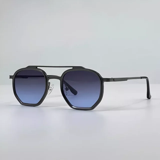 What makes these sunglasses truly unique is the double beam metal design, a subtle yet eye-catching detail that adds character and edge. The small square frame, measuring just under 2 inches wide, perfectly balances boldness with sophistication, ensuring these glasses never go out of fashion. Equipped with gradient lenses featuring UV400 protection, they shield your eyes from harmful sun rays while maintaining crystal-clear vision—ideal for driving or everyday wear.