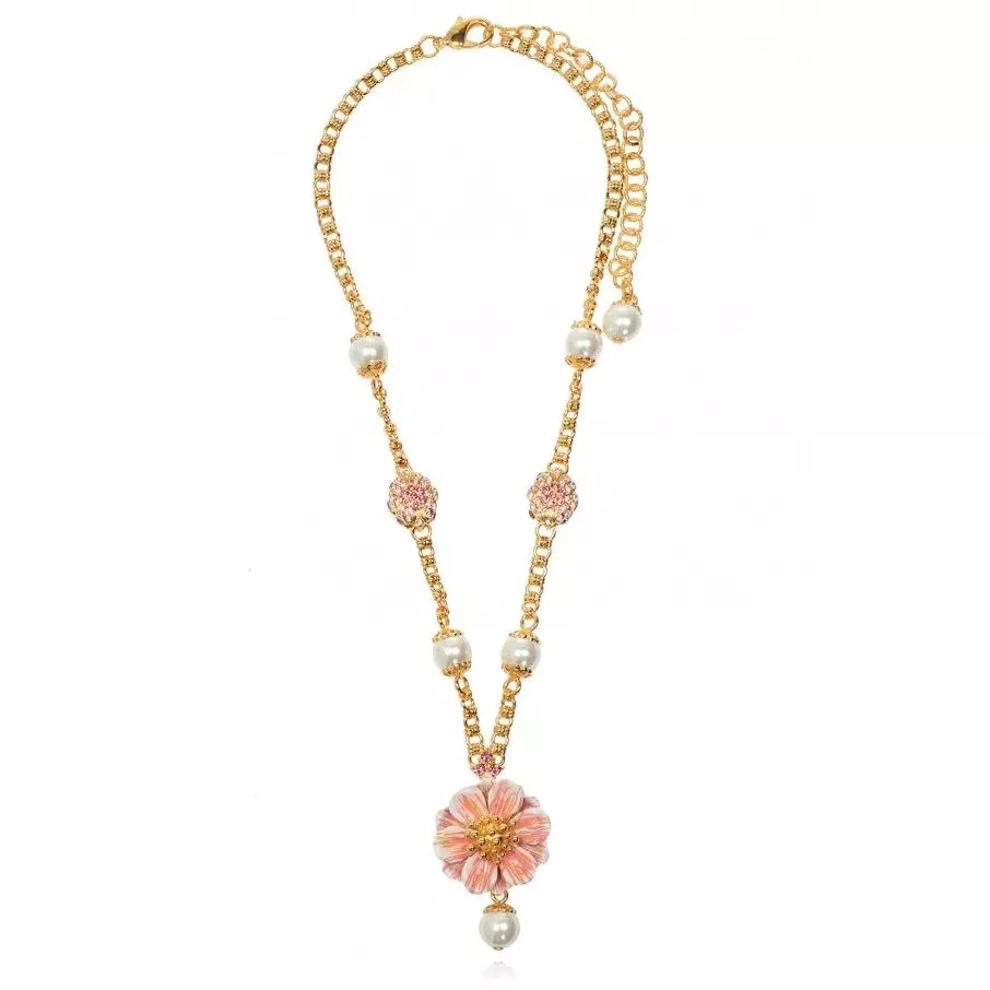 Dolce & Gabbana Gold Crystal Floral Charm Necklace