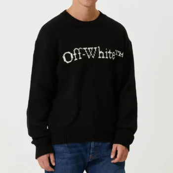 Off-White Cotton Crew Neck Sweater with Iconic Monogram