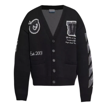 Off-White Cotton Varsity Cardigan with Oversized Fit