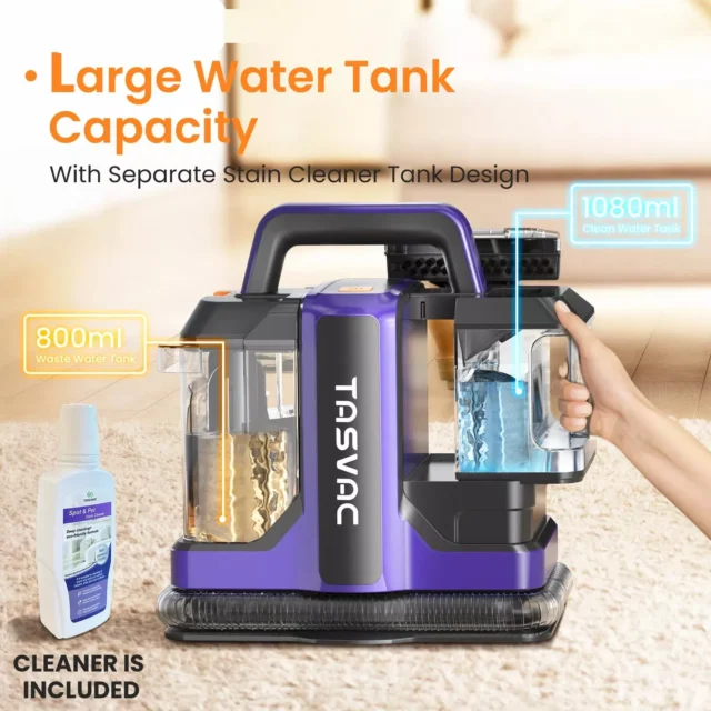 Say goodbye to stubborn stains and lingering odors with the TASVAC C7 Portable Carpet & Upholstery Cleaner. Designed for pet owners, busy families, and car lovers alike, this compact yet powerful machine makes deep cleaning easier than ever. Whether you’re freshening up your car’s interior, reviving fabric couches, or tackling spills on carpeted stairs, this cleaner has you covered with high suction power and smart design features.