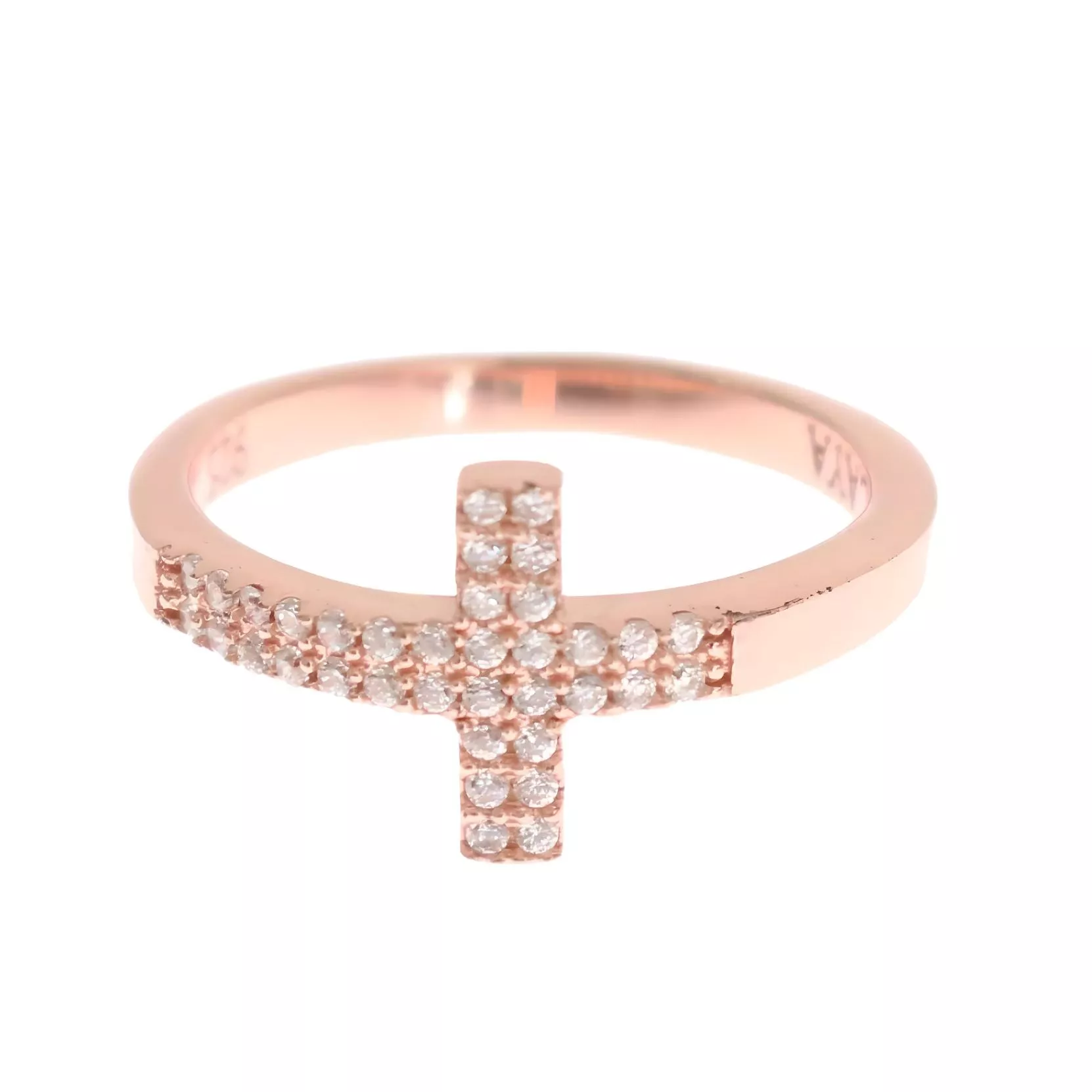 NIALAYA Pink 18K Gold-Plated Sterling Silver Ring with Clear CZ Crystals