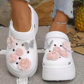 Patent Leather Rivet Flower Loafers for Women with Round Toe and Low Heel
