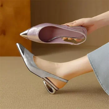 Elegant Leather Pointed Toe Pumps for Women – Mid Heel Office Shoes