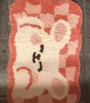 This mat is delightful, offering a thick, luxurious feel, and it washes wonderfully. I have it placed in front of my indoor bunny's litter box, surrounded by stuffed animals to create a cute environment for both of us. It's a solid 10 out of 10 in my eyes.