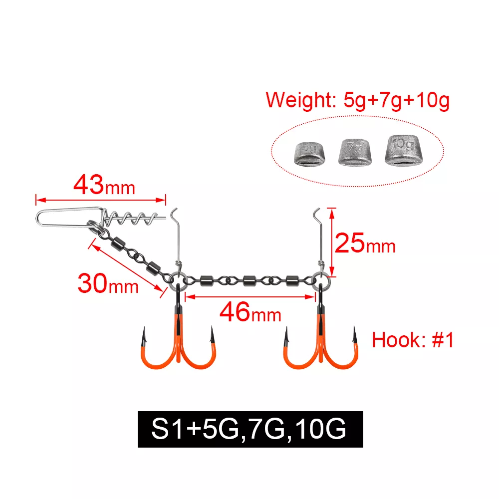 Unlike ordinary rigs, this one gives you full control over hook placement while preserving the lure’s swimming action. Its corrosion-resistant build and UV-painted trebles make it highly effective in low visibility and high-pressure fishing scenarios. With this rig, you’re not just increasing your chances—you’re ensuring results.