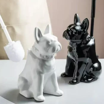 Modern Ceramic Toilet Brush with Long Handle and Sleek Holder