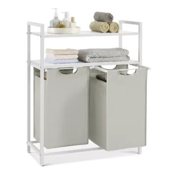 2-Compartment Laundry Hamper with Removable Bags and Storage Shelves